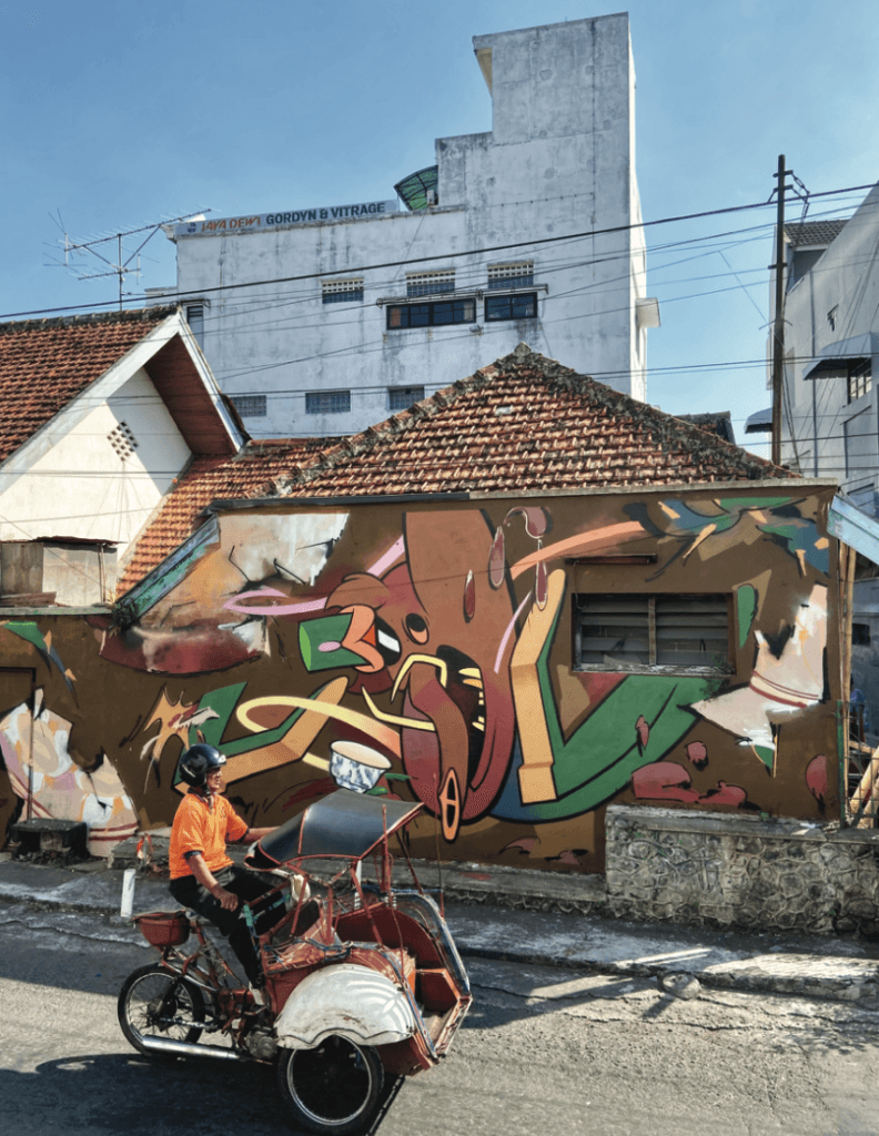 In 2024, Rotterdam-based graffiti artist Danny Rumbl traveled through Indonesia in search of his roots. While painting in the streets, he met many local street artists. Inspired by the completely different context but a shared creative drive, he and Javanese artist Sicovecas founded the platform ‘Doewa Matjan’ — meaning ‘Two Tigers’. With this platform, they aim to stimulate exchange between Indonesian and Dutch artists with Indo roots.