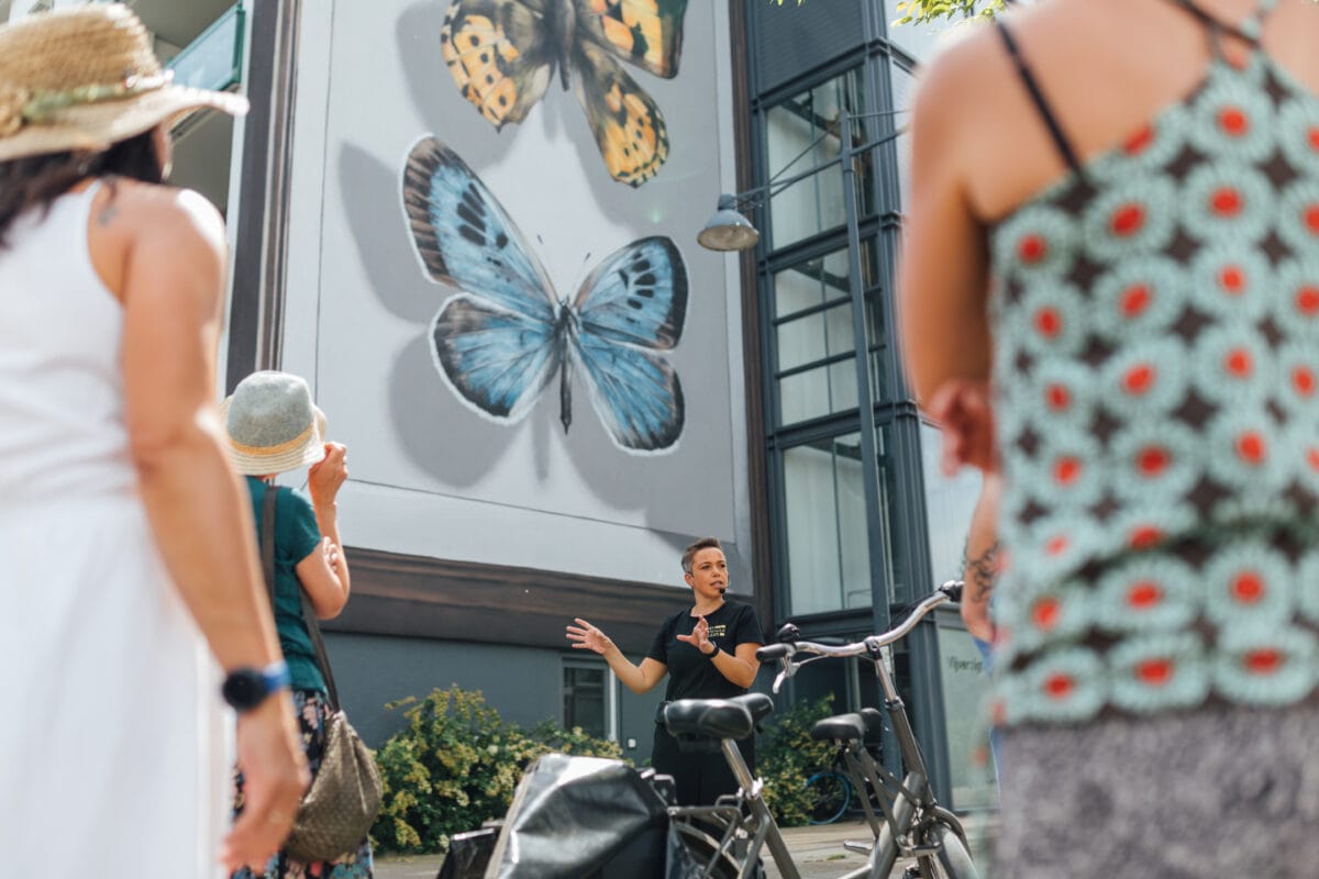 Ontdek Breda op de fiets en bekijk de stad eens op een andere manier! Tijdens deze 1,5 uur durende fietstour volg je samen met andere deelnemers een route langs 8–10 bijzondere muurschilderingen buiten het centrum van Breda. Je gids vertelt verhalen over het verleden, het heden en de toekomst van de stad – van de bevrijding van Breda tot de grootste insectendoos van Nederland, en van fanatieke duivenmelkers tot het kleurrijke carnaval. Een inspirerende en gezellige tocht waarbij je Breda actief en op een unieke manier beleeft!