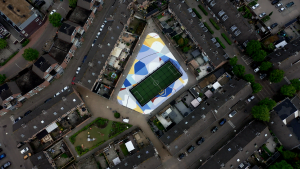 Een schildering die vanuit de ruimte is te zien (bijna dan)