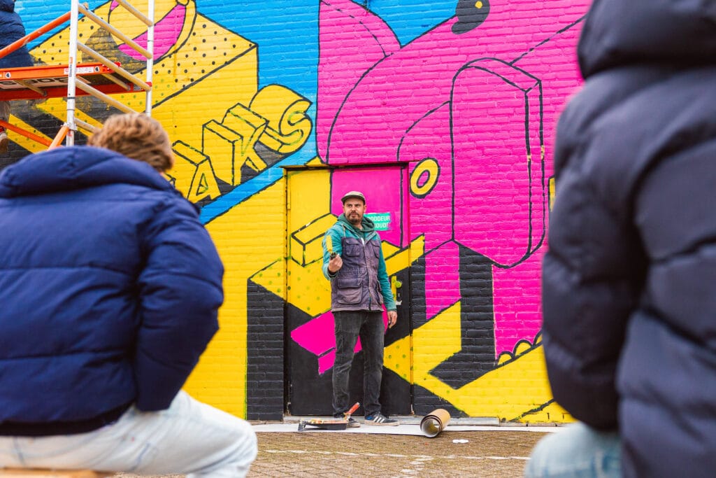 Ditmaal namen studenten van het OLV Breda deel aan onderdelen van het proces, onder begeleiding van de Blind Walls Gallery en Moorman zelf. De leerlingen kregen een tour langs verschillende murals, waarbij aandacht werd besteed aan de achtergrond van de werken, het maakproces en het belang van goed onderhoud. Vervolgens konden ze zelf kennismaken met muurschilderen en retoucheren – en kregen daarmee inzicht in het vakmanschap van werken op groot formaat.