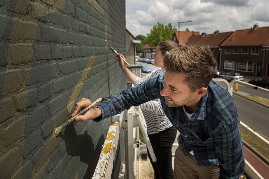 Zo gezegd, zo gedaan. In de schildering is duidelijk een aardappelplant te zien, de inspiratie daarvoor komt van de nabij gelegen Gasthuisvelden, én de naam van de straat waar de schildering is aangebracht, de Vincent van Goghstraat. De Gasthuisvelden zijn vernoemd naar het ooit nabij gelegen Katholieke Gasthuis aan de Haagdijk, waar ‘behoeftige zieken’ en ‘oude van dagen’ werden verzorgd. De omliggende velden werden gebruikt als moestuin en akkers waar ook, je raadt het al, aardappelplanten groeiden.