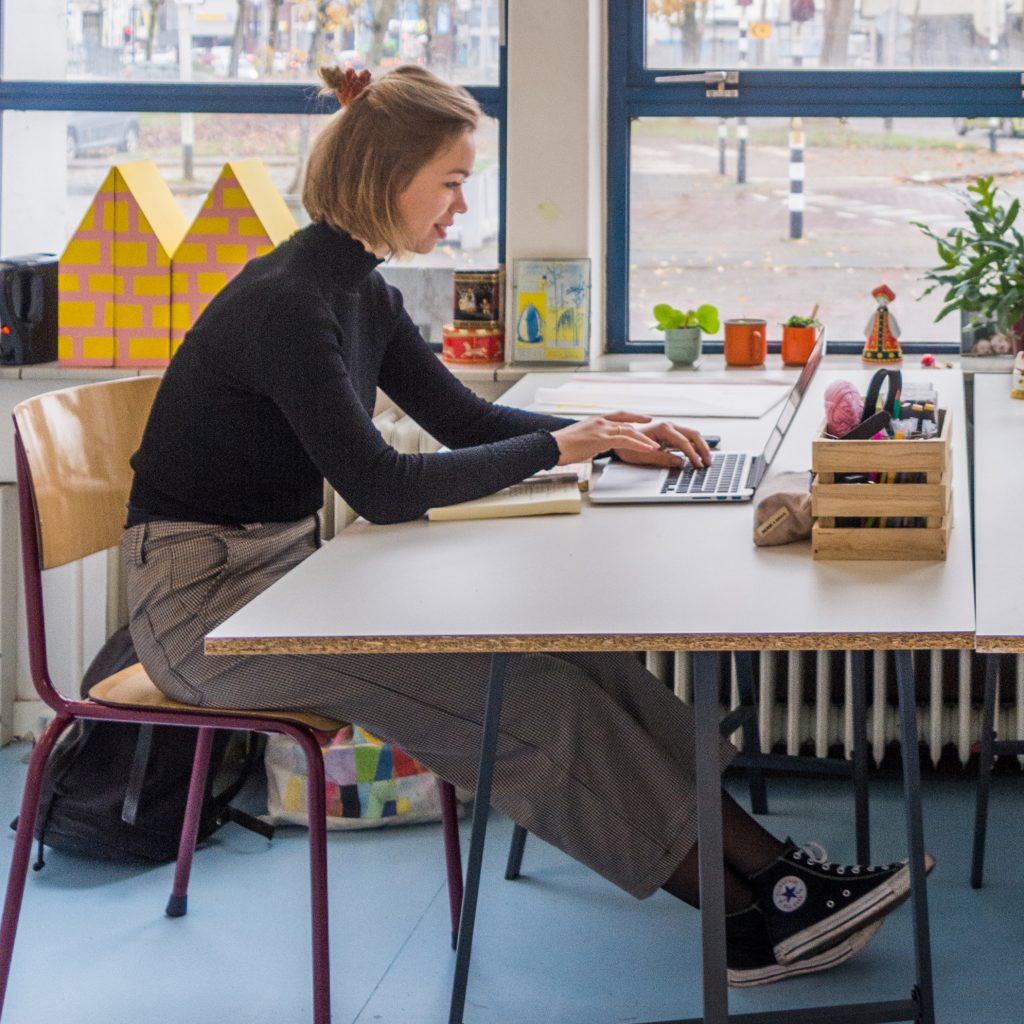De Hutspot winkels staan bekend om hun sfeervolle interieur, waarin wordt gespeeld met kleur en vorm. Ook met deze winkel wil Hutspot lokaal talent steunen en hun creativiteit een platform bieden. Evi benaderde Hutspot zelf over het maken van de muurschildering, een maand na haar afstuderen aan Bredase Kunstacademie AKV St. Joost kon ze aan de slag.