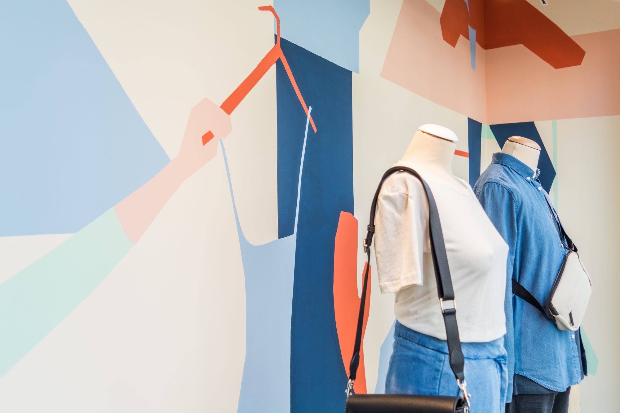 De Hutspot winkels staan bekend om hun sfeervolle interieur, waarin wordt gespeeld met kleur en vorm. Ook met deze winkel wil Hutspot lokaal talent steunen en hun creativiteit een platform bieden. Evi benaderde Hutspot zelf over het maken van de muurschildering, een maand na haar afstuderen aan Bredase Kunstacademie AKV St. Joost kon ze aan de slag.