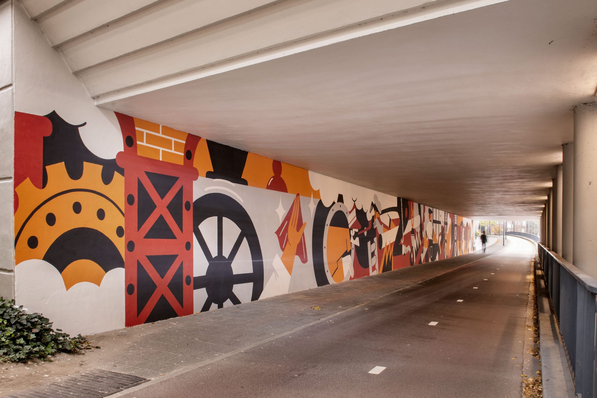 Deze 130-meter lange muurschildering is een ode aan de ‘vergeten broer van Vincent van Gogh’, en de Backer & Rueb machinefabriek.